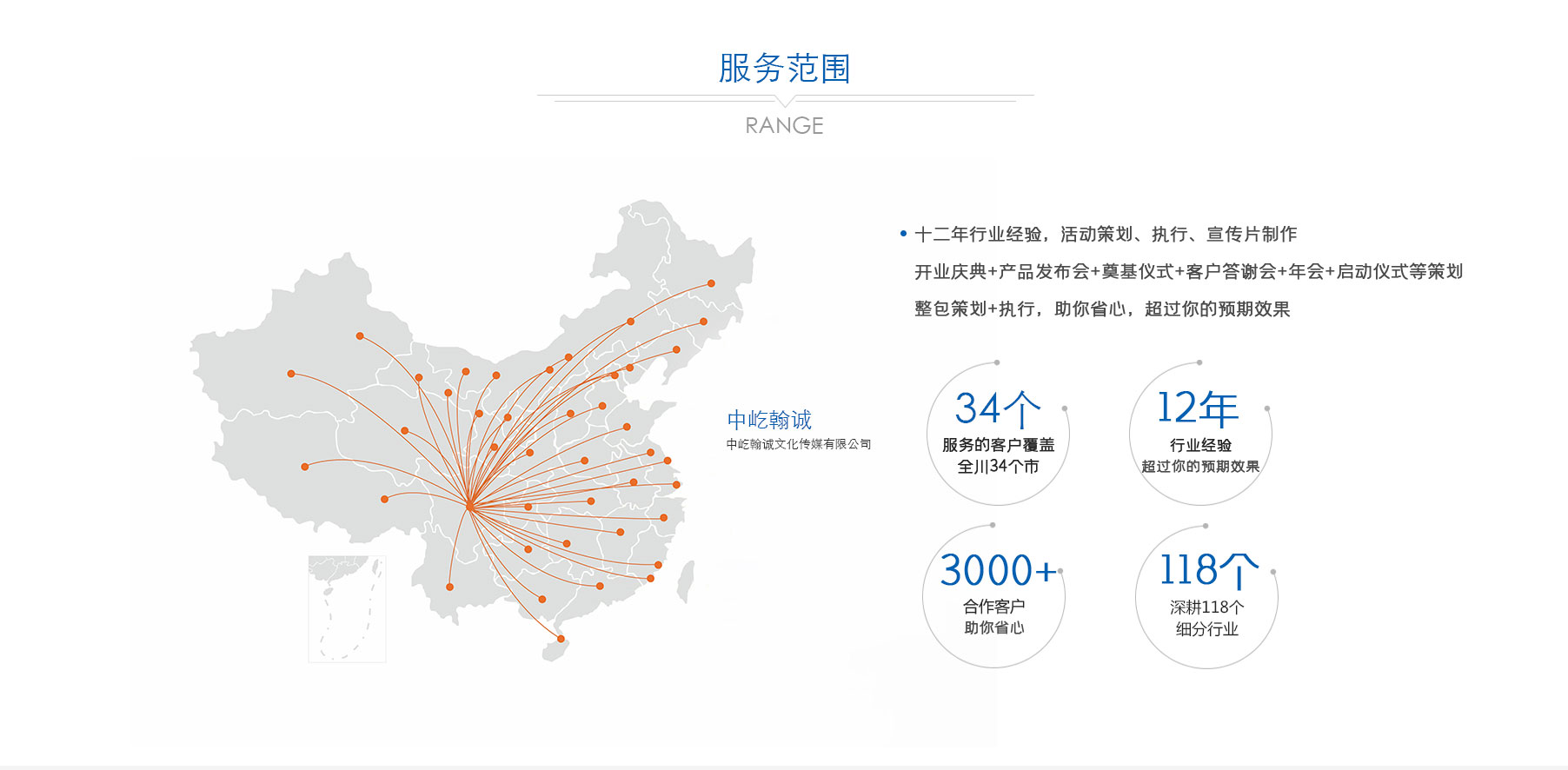 歷經(jīng)多年深耕,公司已形成 “公關(guān)活動(dòng)、展覽展示、品牌戰(zhàn)略服務(wù)、影視制作” 四大核心業(yè)務(wù)板塊。從創(chuàng)意策劃到落地執(zhí)行,從品牌塑造到視覺呈現(xiàn),從活動(dòng)運(yùn)營(yíng)到影像記錄,中屹翰誠(chéng)始終以專業(yè)視角與創(chuàng)新理念,滿足客戶多元化需求。憑借出色的服務(wù)品質(zhì)與專業(yè)能力,公司在市場(chǎng)中穩(wěn)步前行,服務(wù)版圖已拓展至政府、金融、媒體、演藝、建筑等 118 個(gè)細(xì)分行業(yè),與超 3000 家客戶建立深度合作關(guān)系,以實(shí)力贏得廣泛認(rèn)可與信賴。